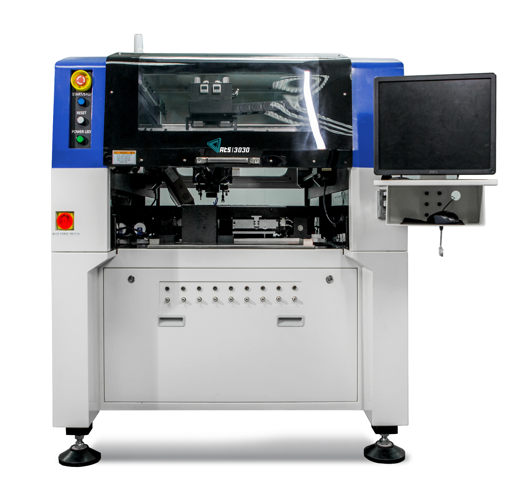 11. ATS3011爐前帶料專用,貼裝屏蔽蓋附件帶吹氣模式,保護PCB,防止貼裝屏蔽蓋造成其他元件移位。